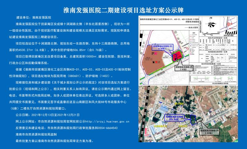 淮南发强医院二期建设项目选址方案公示