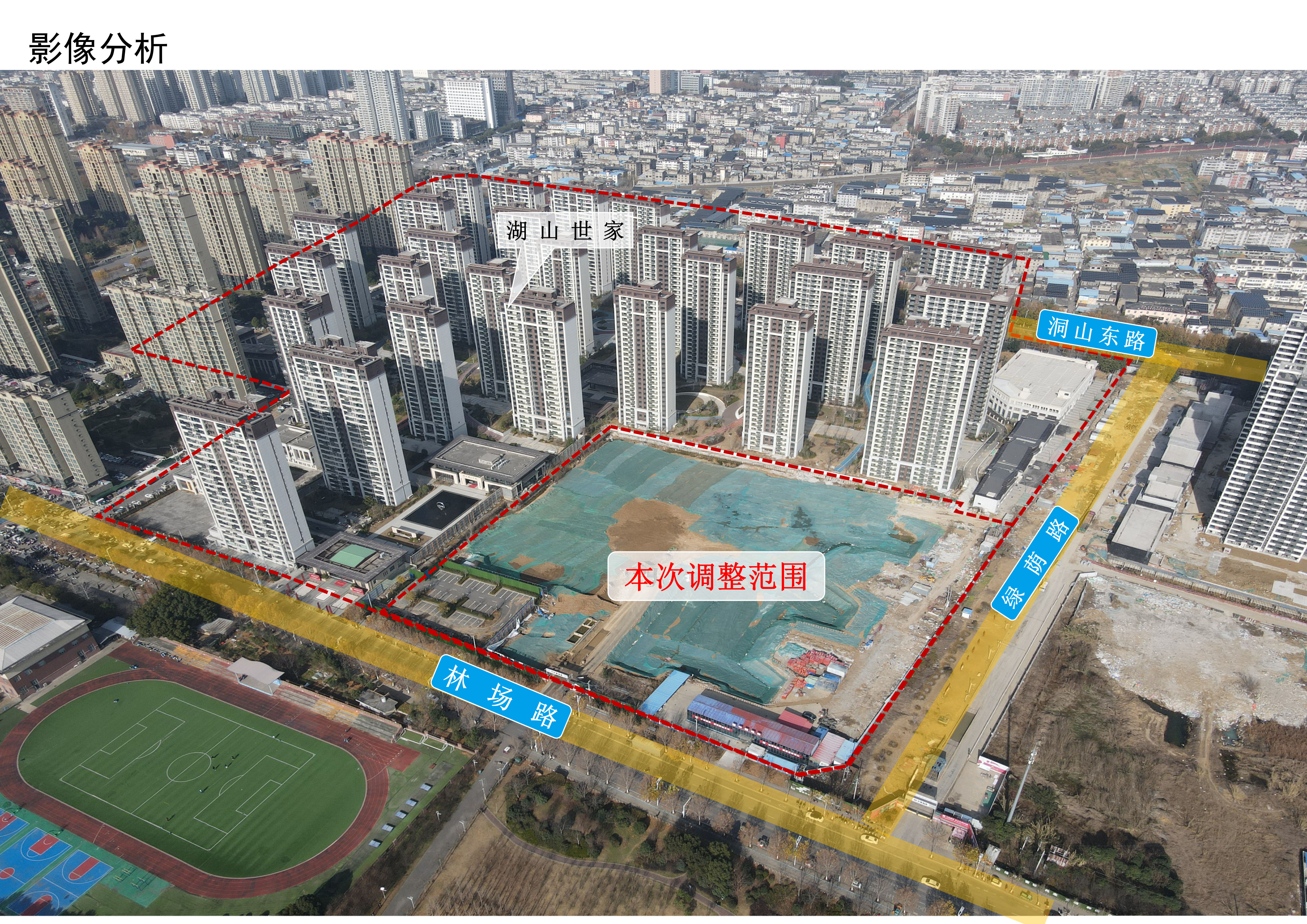 项目地块位于碧荷庭小区东侧、洞山东路南侧、绿荫路西侧、林场路北侧,总用地面积约15.91万㎡(约238.65亩),本次调整范围为三期区域。