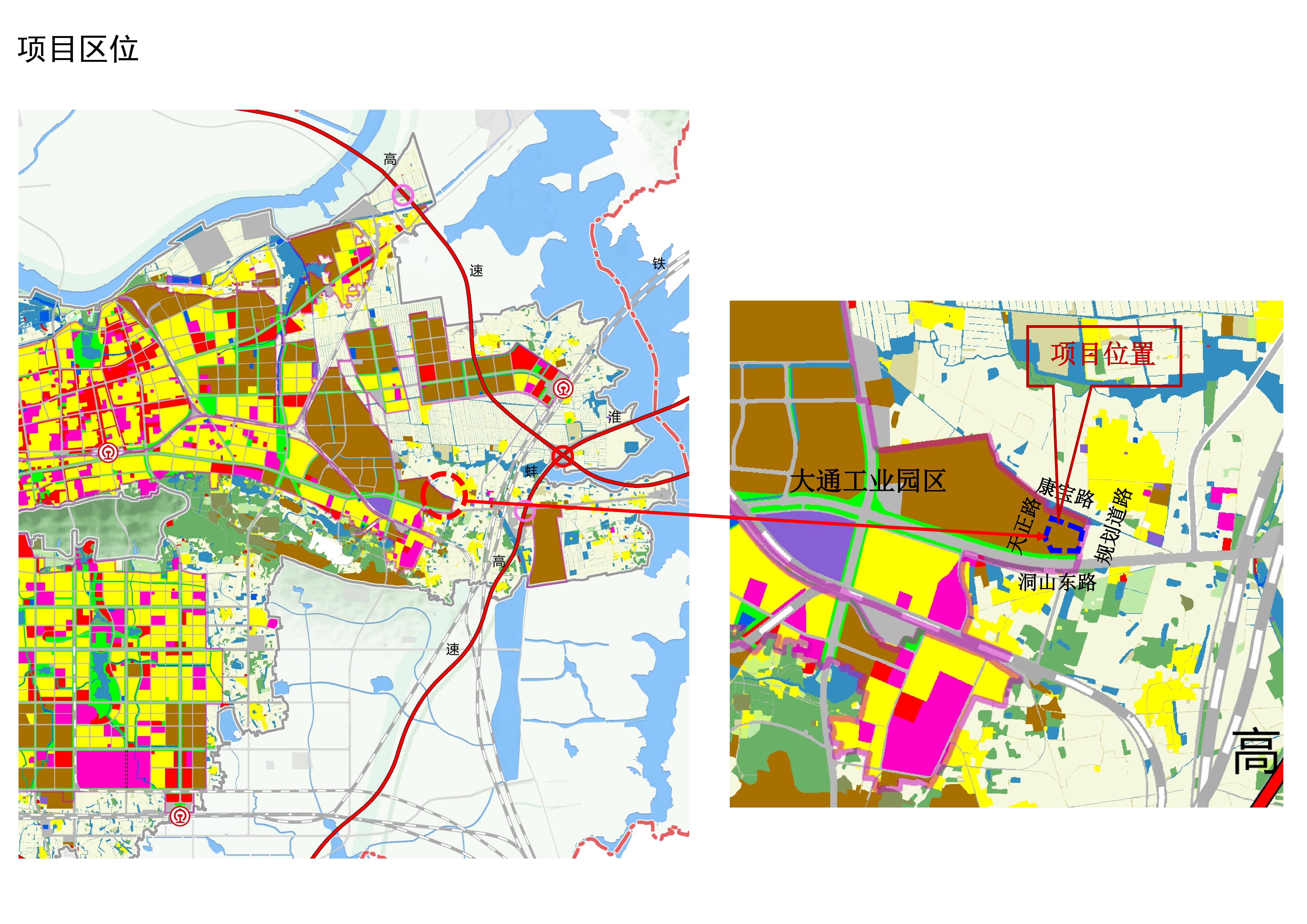 项目地块位于大通区天正路东侧、康宝路南侧、规划道路西侧、洞山东路北侧。本次规划设计内容包括新建和改造两部分。项目规划总用地面积约7.14万㎡,绿篱围墙中心线内用地面积(计容用地面积)约7万㎡,总建筑面积约9.44万㎡,计容总建筑面积约11.53万㎡,容积率约1.65,建筑系数约56.33%,绿地率约3.63%。