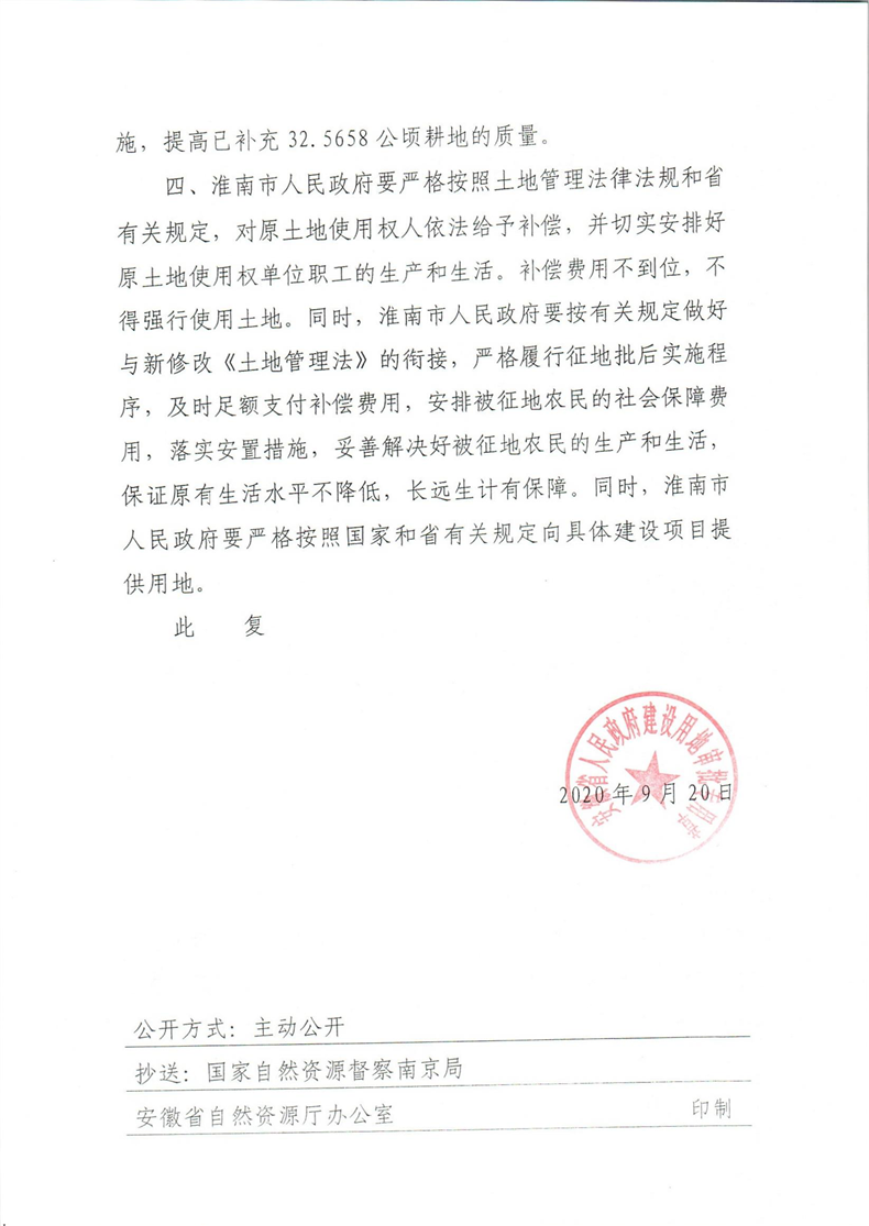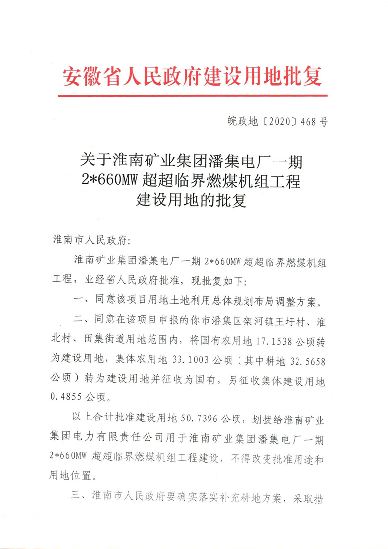 关于淮南矿业集团潘集电厂一期2×660MW超超临界燃煤机组工程建设用地批复