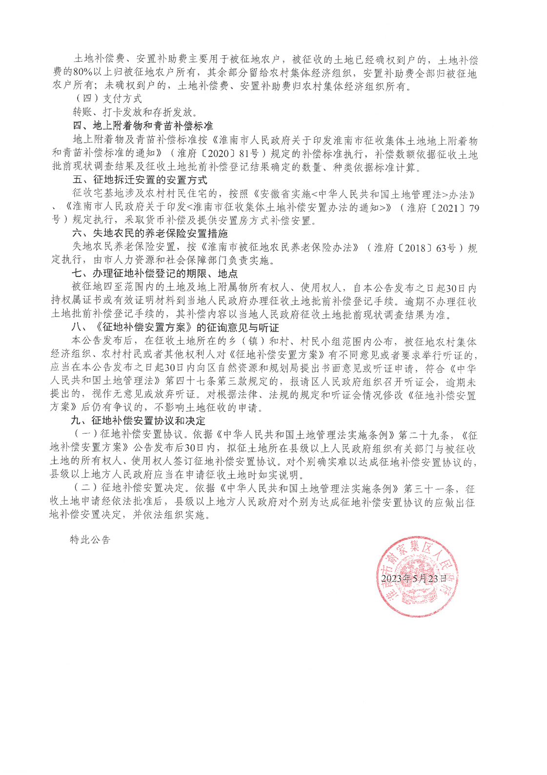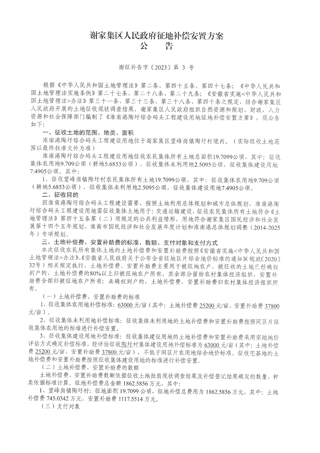 淮南港陶圩综合码头工程建设用地征地补偿安置方案公告