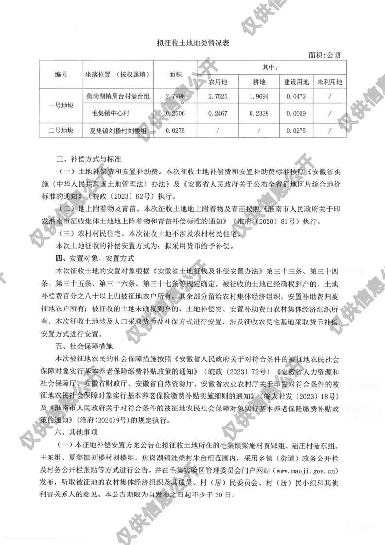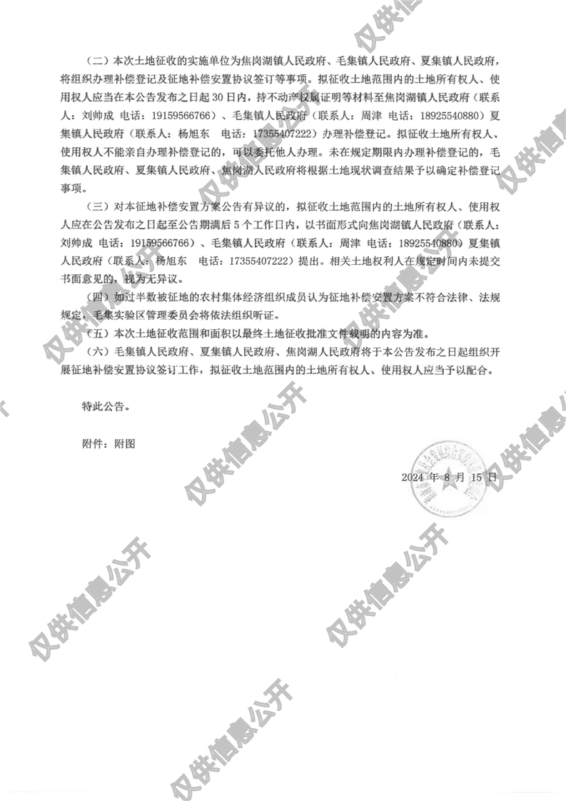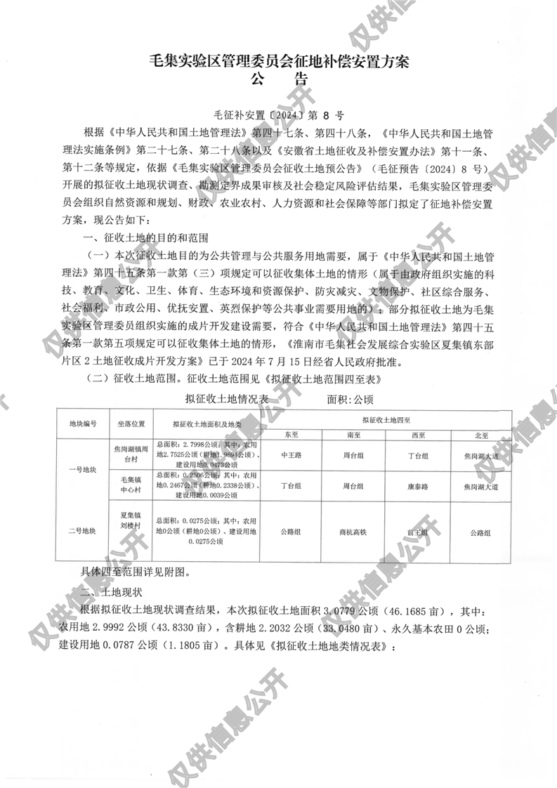 毛集实验区2024年第1批次城镇建设用地征地补偿安置方案公告