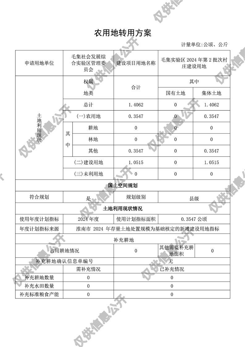 毛集实验区2024年第2批次村庄建设用地农用地转用方案
