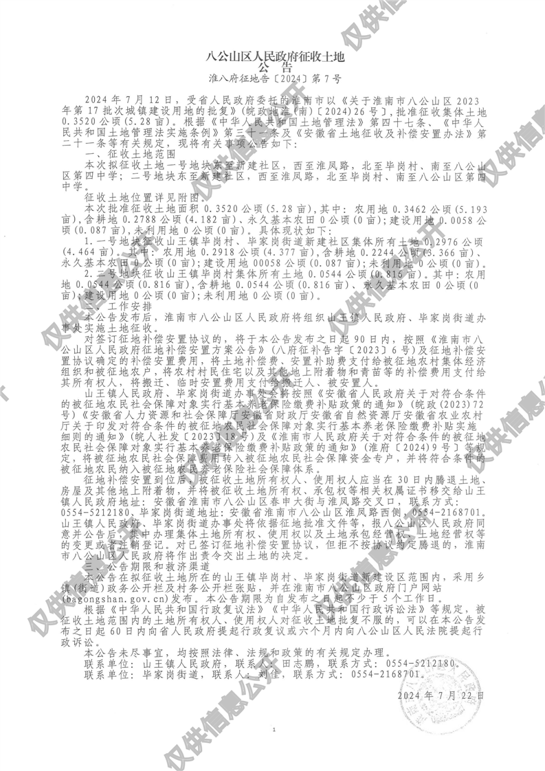 淮南市八公山区2023年第17批次城镇建设用地征收土地公告