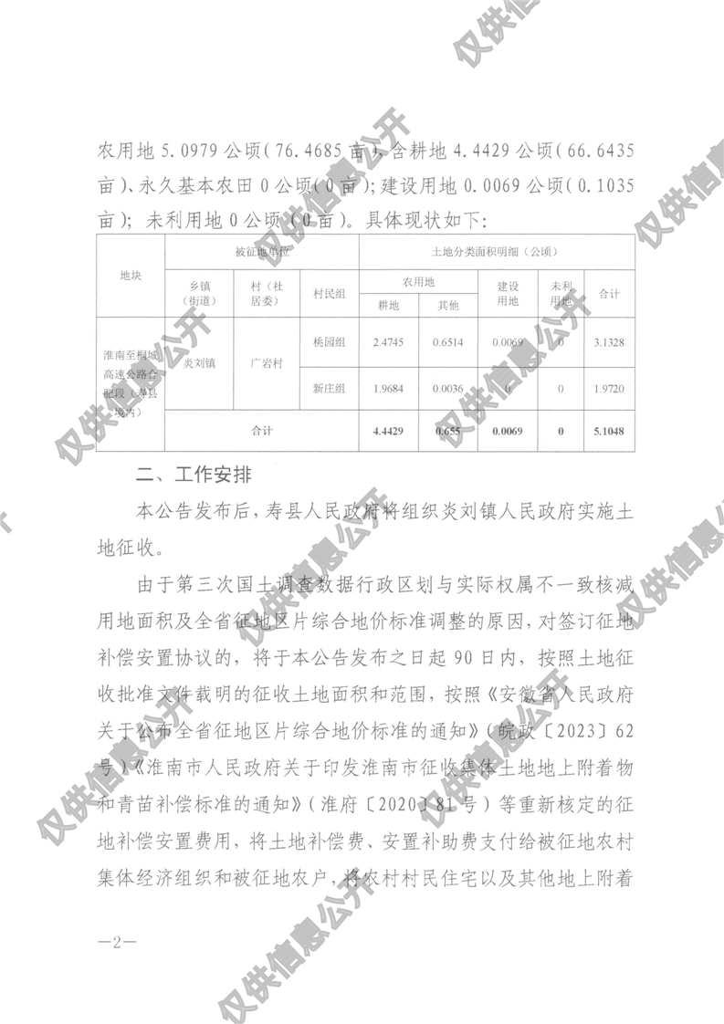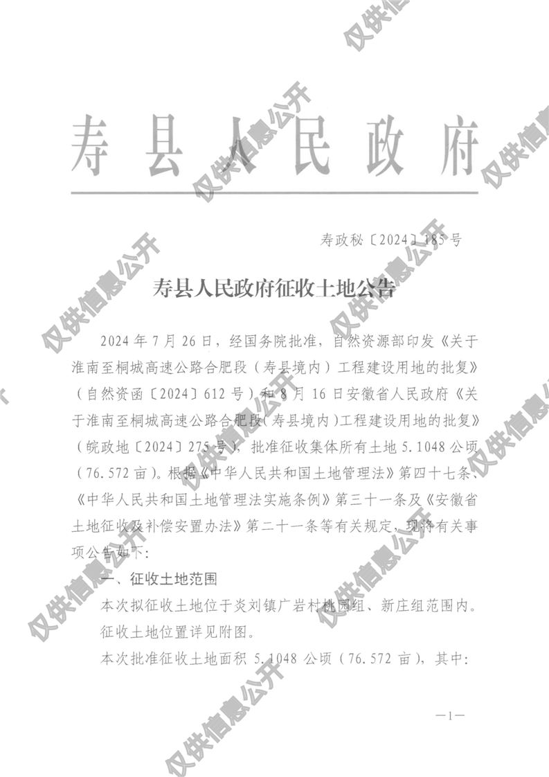 淮南至桐城高速公路合肥段(寿县境内)工程建设用地征收土地公告