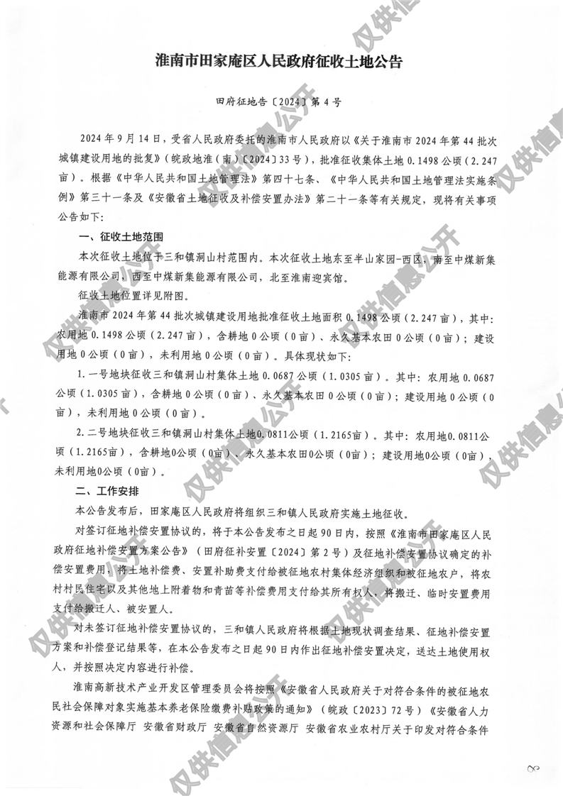 淮南市2024年第44批次城镇建设用地征收土地公告