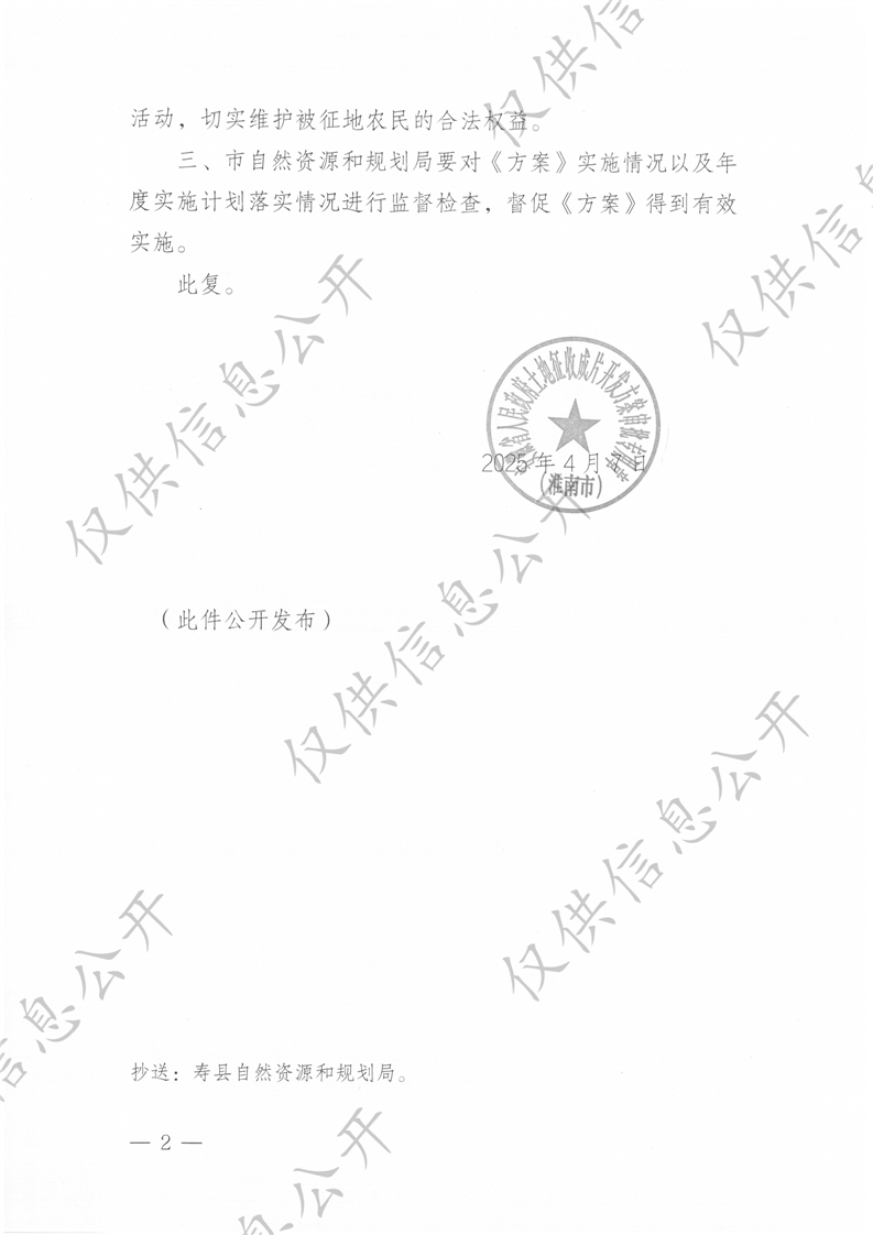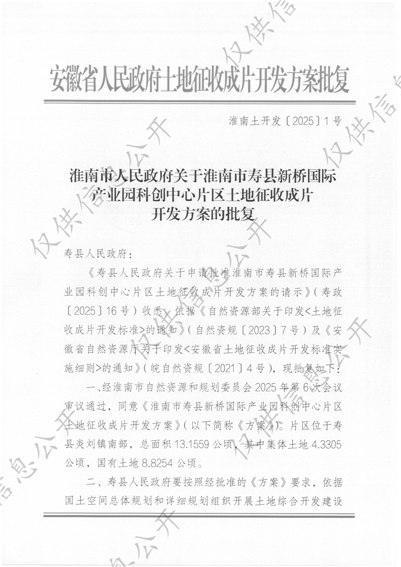 淮南市人民政府关于淮南市寿县新桥国际产业园科创中心片区土地征收成片开发方案的批复