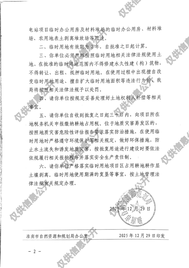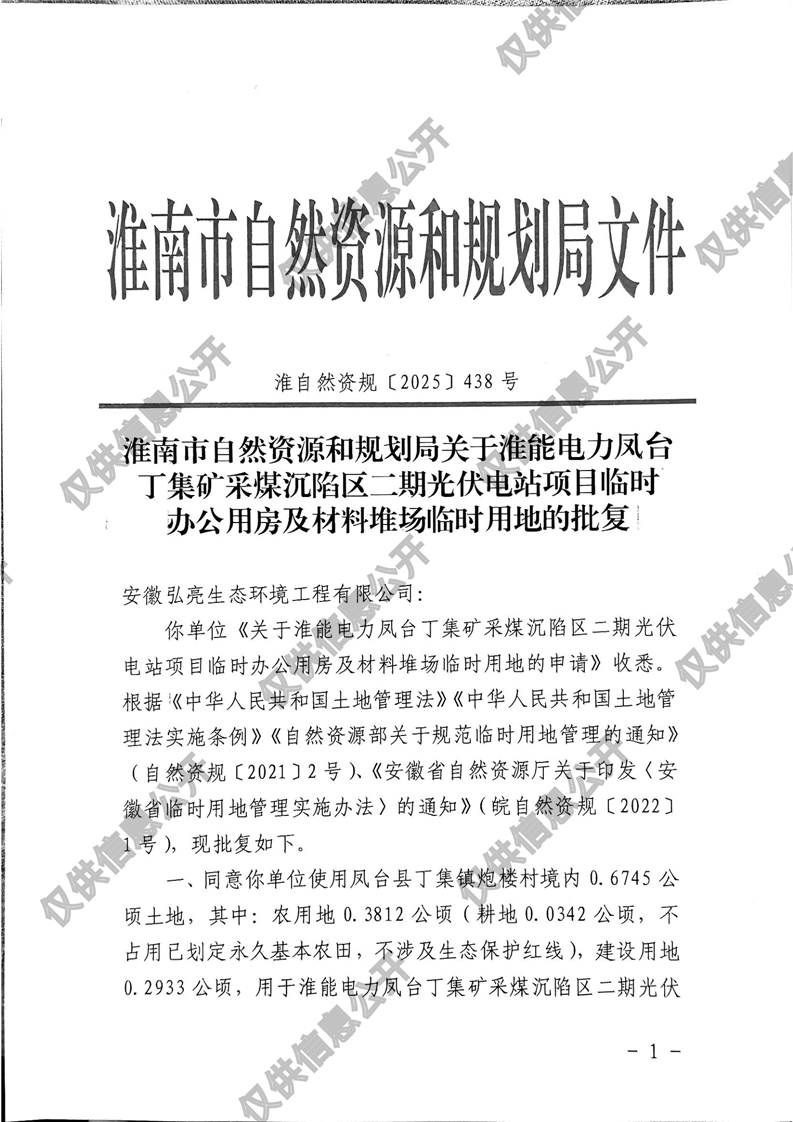 淮能电力凤台丁集矿采煤沉陷区二期光伏电站项目临时办公用房及材料堆场临时用地批复