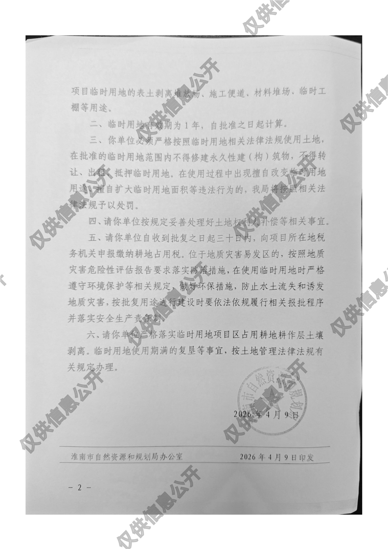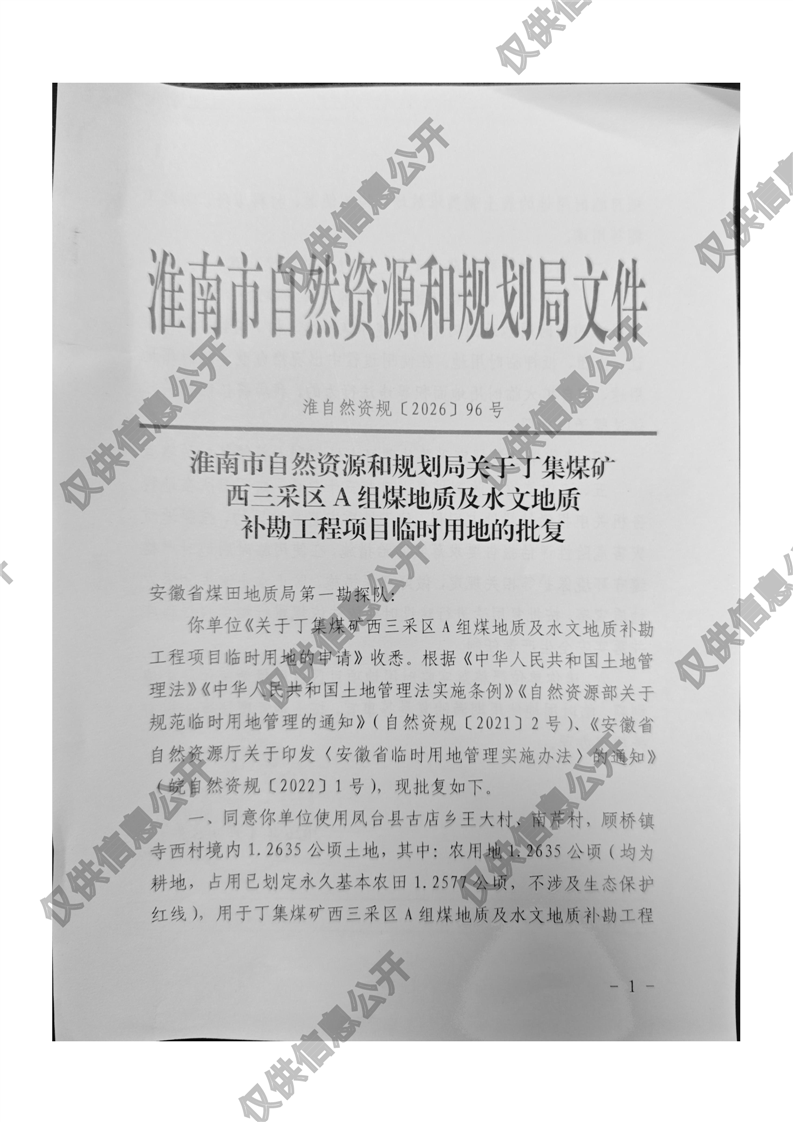 丁集煤矿西三采区A组煤地质及水文地质补勘工程项目临时用地批复