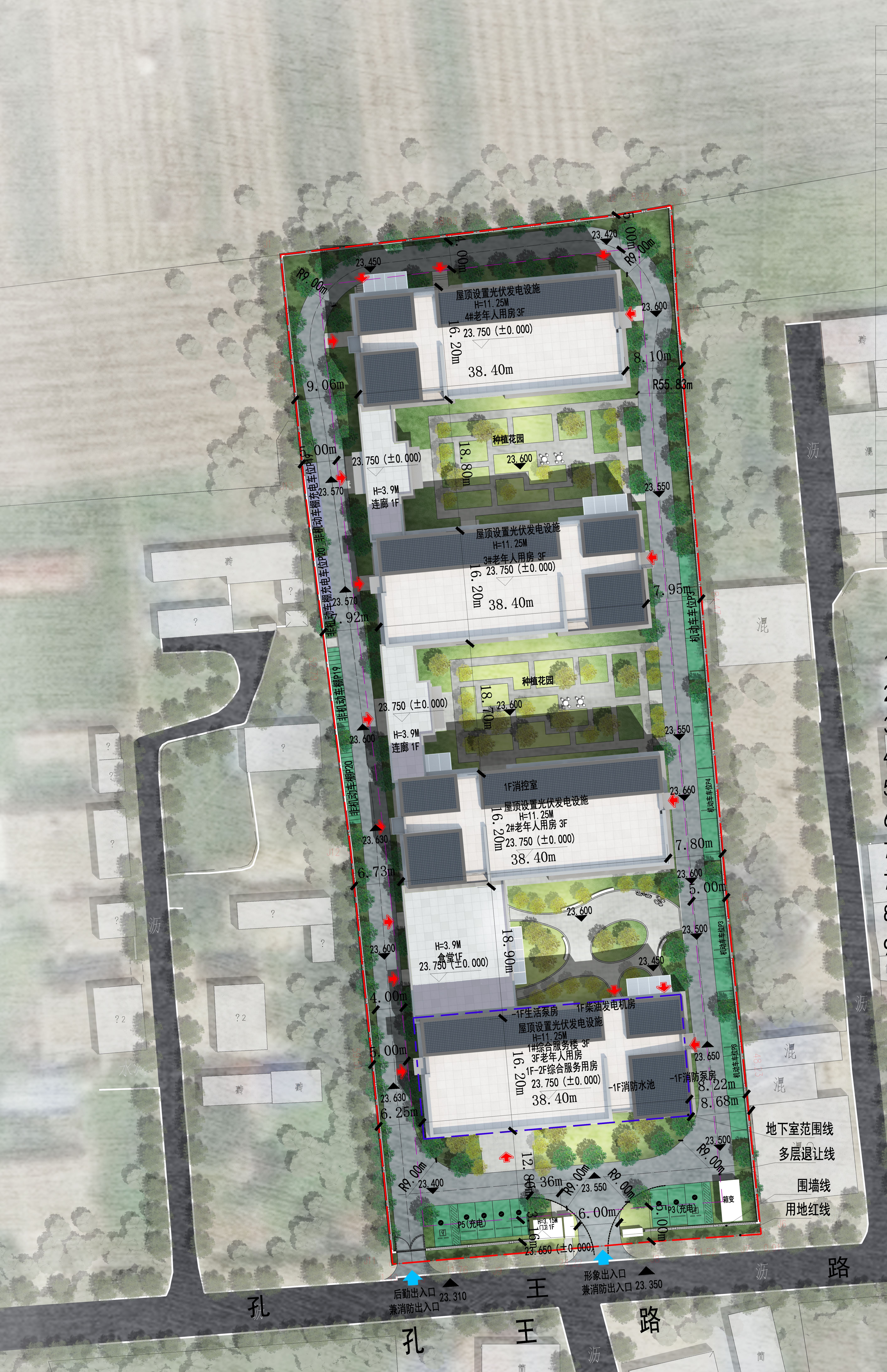 规划新建3栋3层老年人用房、1栋3层综合服务楼,1栋1层食堂、门卫等。总建筑面积约8703.31㎡,计容建筑面积约7775.50㎡,容积率约0.98,建筑密度约37.52%,绿地率约25.01%。