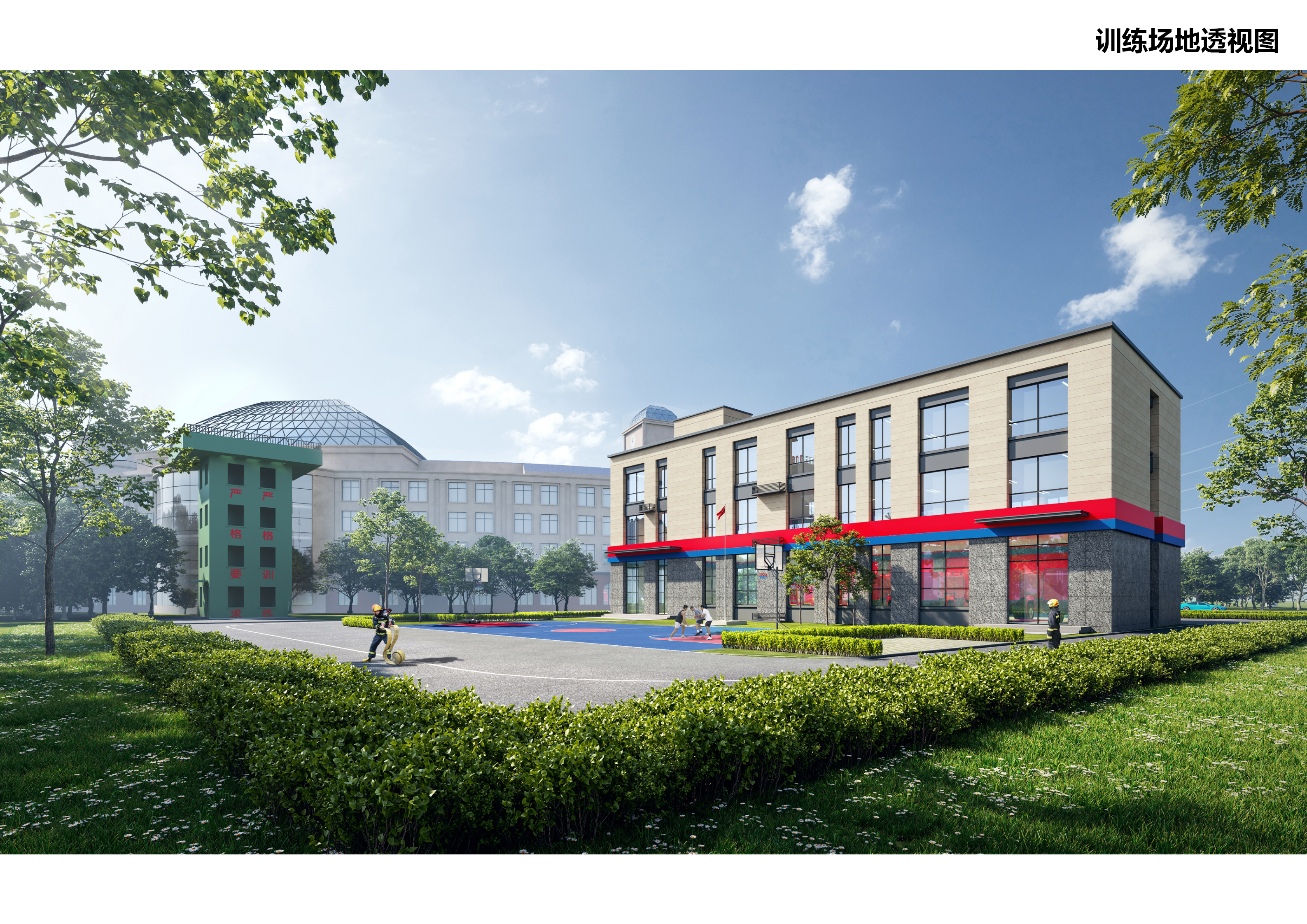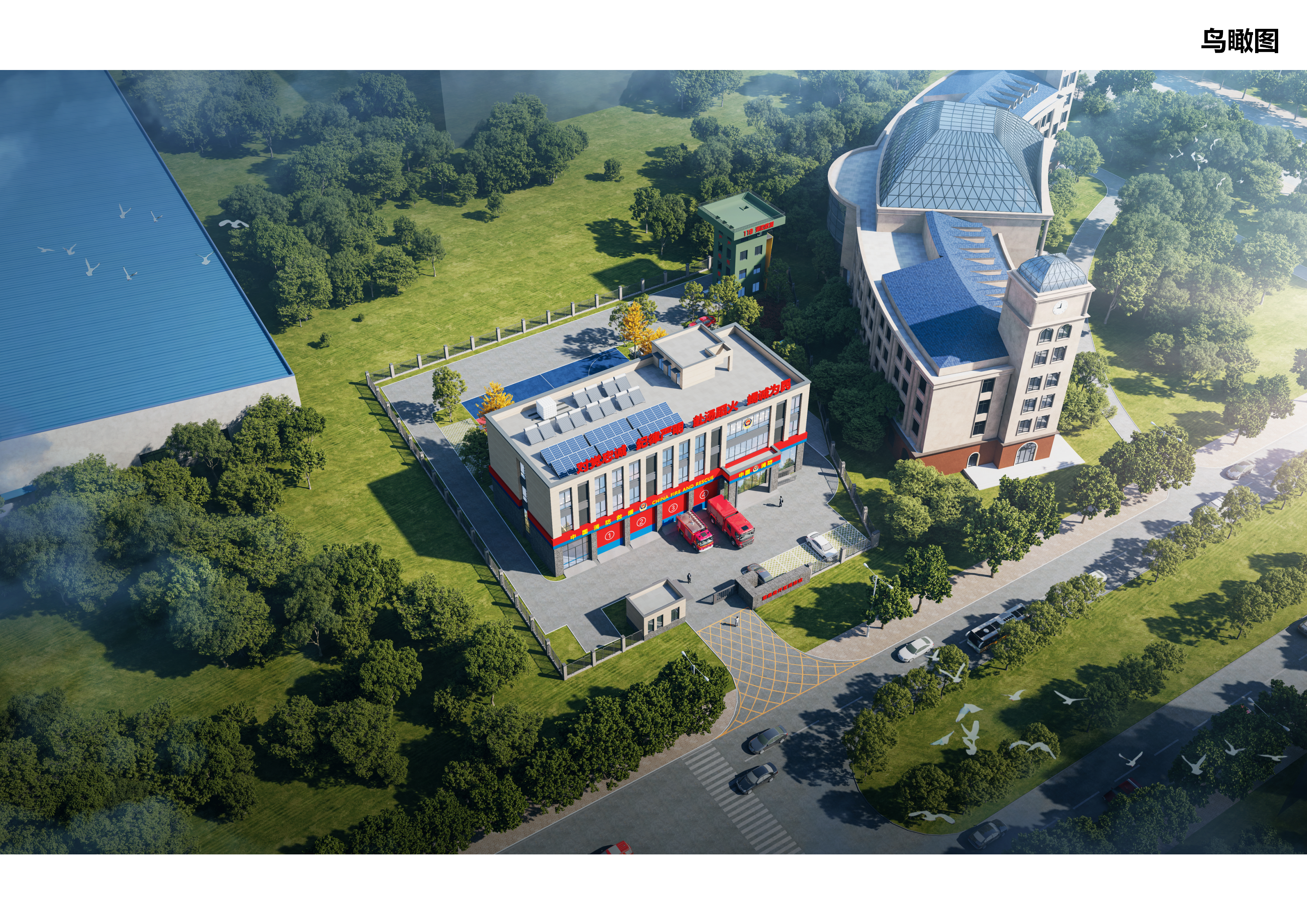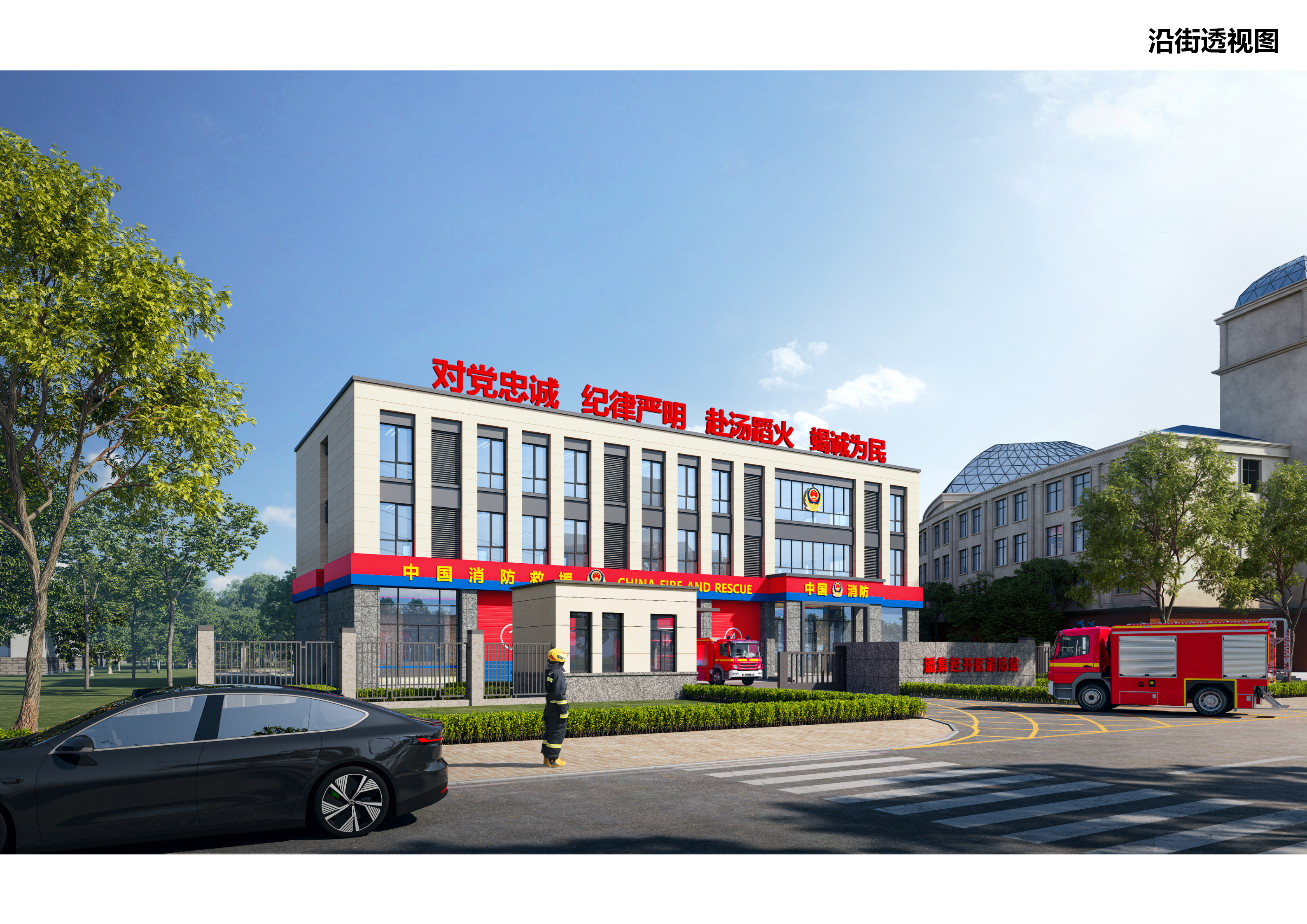 项目地块位于潘集经济开发区淮潘公路西侧、生态大道北侧,总用地面积4619.3㎡,净用地面积4162.7㎡。项目规划新建1栋3层执勤楼、1栋4层训练塔、1栋1层门卫,总建筑面积2439㎡,计容建筑面积2409.08㎡,容积率0.58,建筑密度19.1%,绿地率15%。