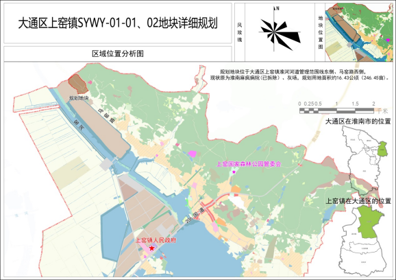 规划地块位于淮南市大通区上窑镇马窑路西侧,规划用地面积约16.43公顷(246.45亩)。