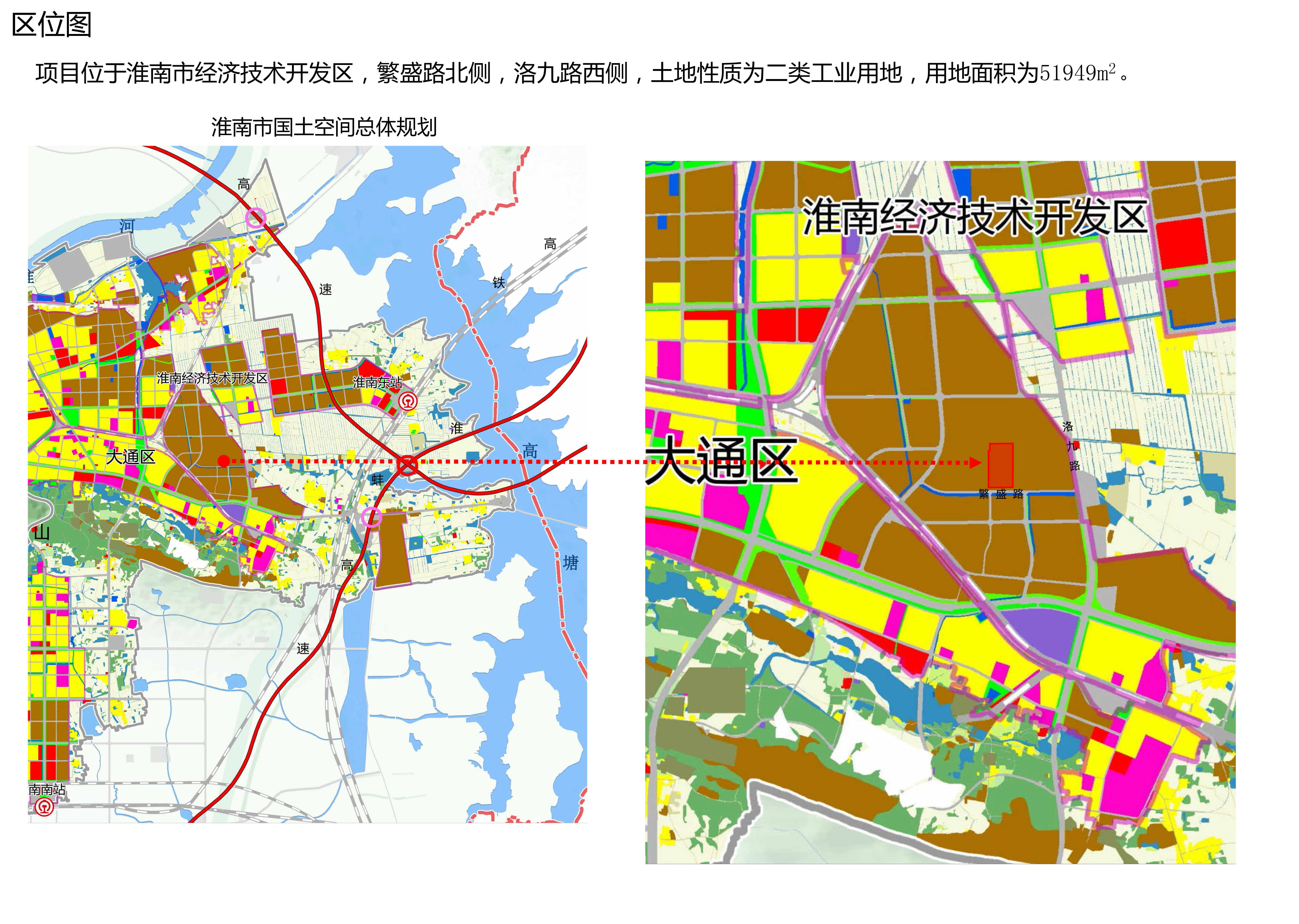 项目地块位于淮南经济技术开发区繁盛路北侧,总用地面积51949㎡。项目规划建设3栋1层厂房、1栋5层综合楼、1栋1层研发中心、1栋1层值班室。项目厂区用地面积51436.53㎡,总建筑面积33460㎡,总计容建筑面积90604㎡,容积率1.76,建筑系数56.54%,绿地率7.8%。