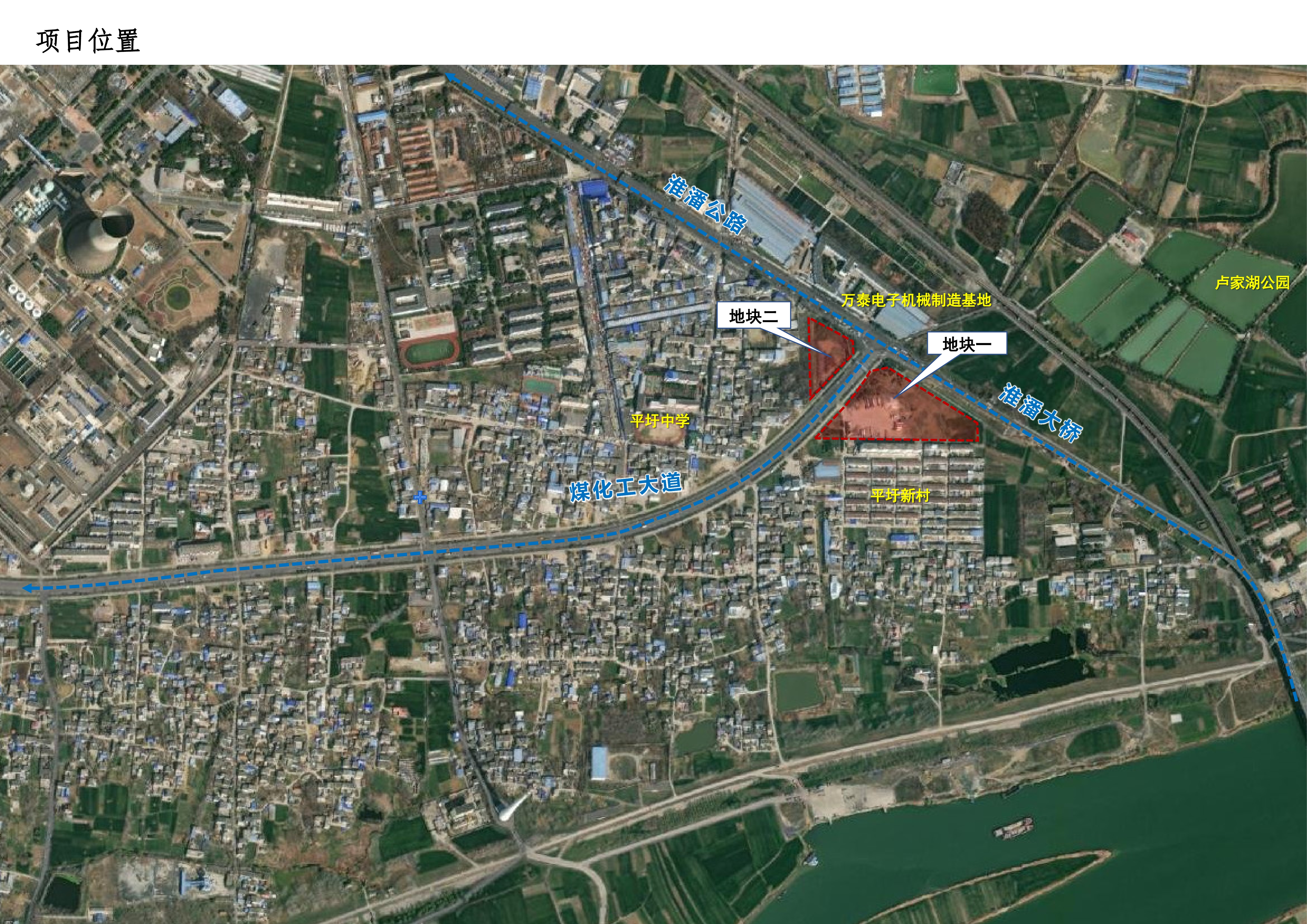 项目地块位于潘集区平圩镇,分为两个地块。地块一位于煤化工大道东南侧,淮潘路西南侧。拟建设停车场、公厕等配套设施,总用地面积24985.52㎡,建筑面积87.23㎡,计容面积84㎡,项目容积率0.003,建筑系数0.35%,绿地率66%。