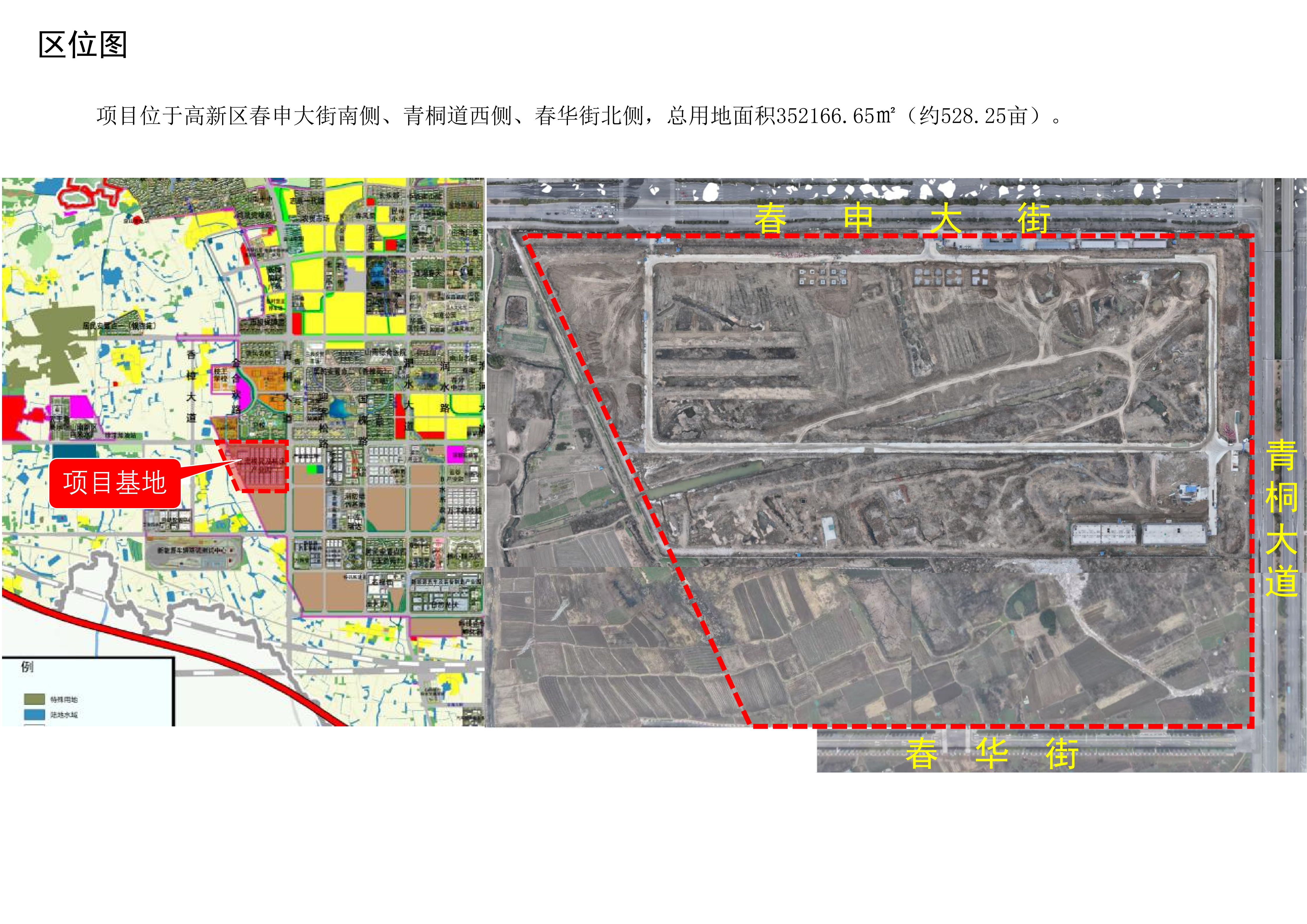 项目地块位于高新区春申大街南侧、青桐道西侧、春华街北侧、支经一路东侧,总用地面积