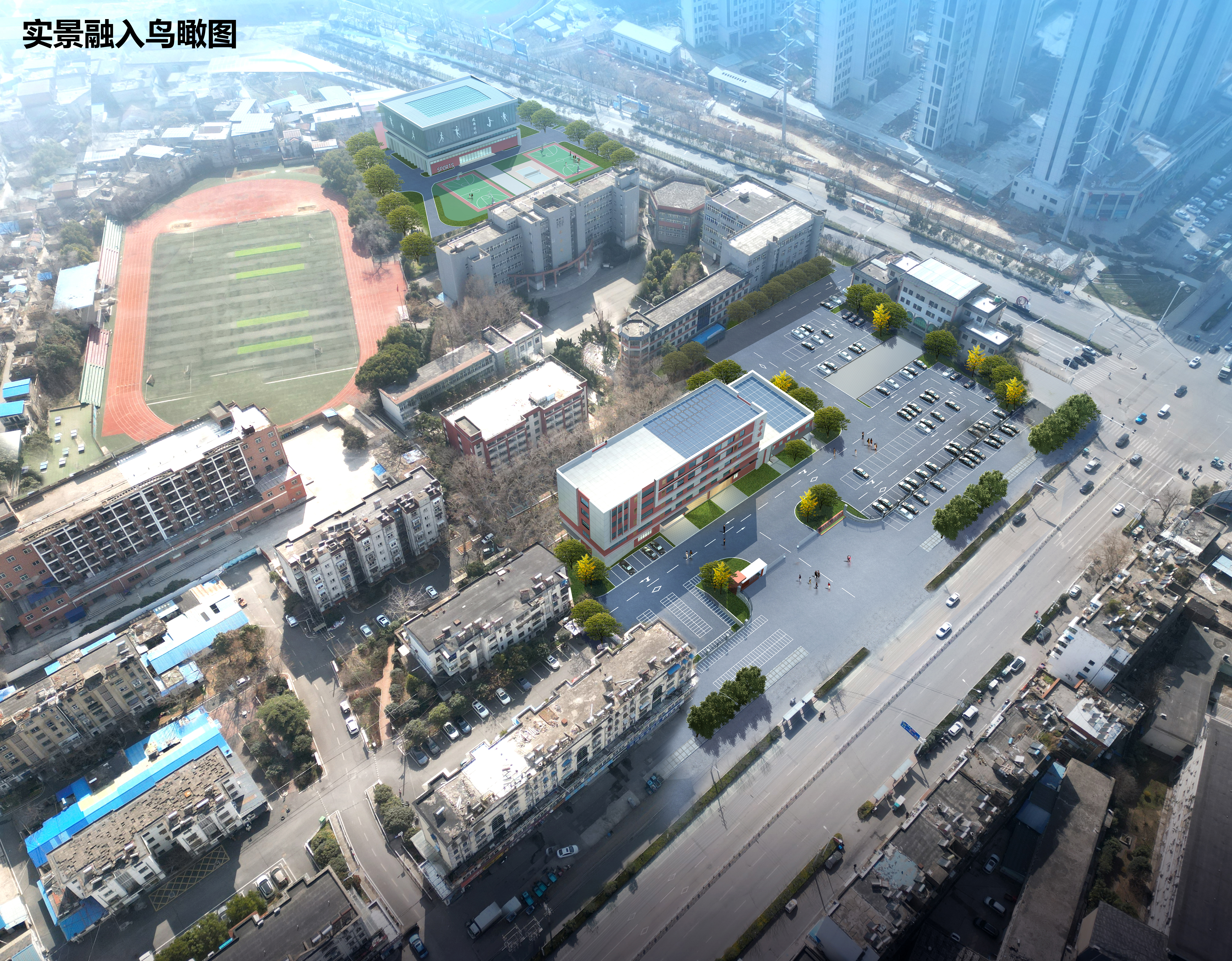 本次新建教学楼建筑面积5350㎡(计容建筑面积4567.79㎡),新建学校门岗40㎡。规划新增机动车停车位165个,其中充电车位58个;新增非机动车位212个。