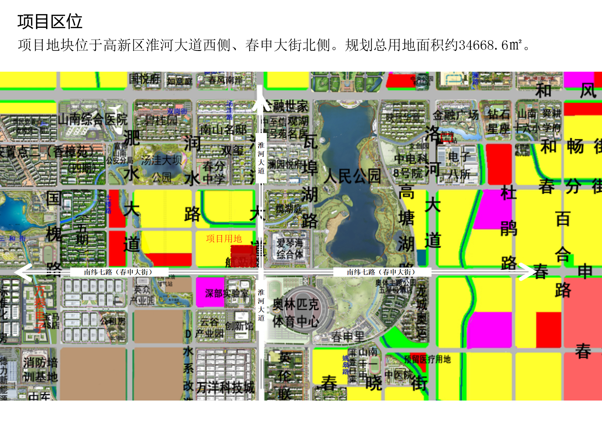 项目地块位于高新区淮河大道西侧、春申大街北侧、润水路东侧。规划总用地面积约34668.6㎡。