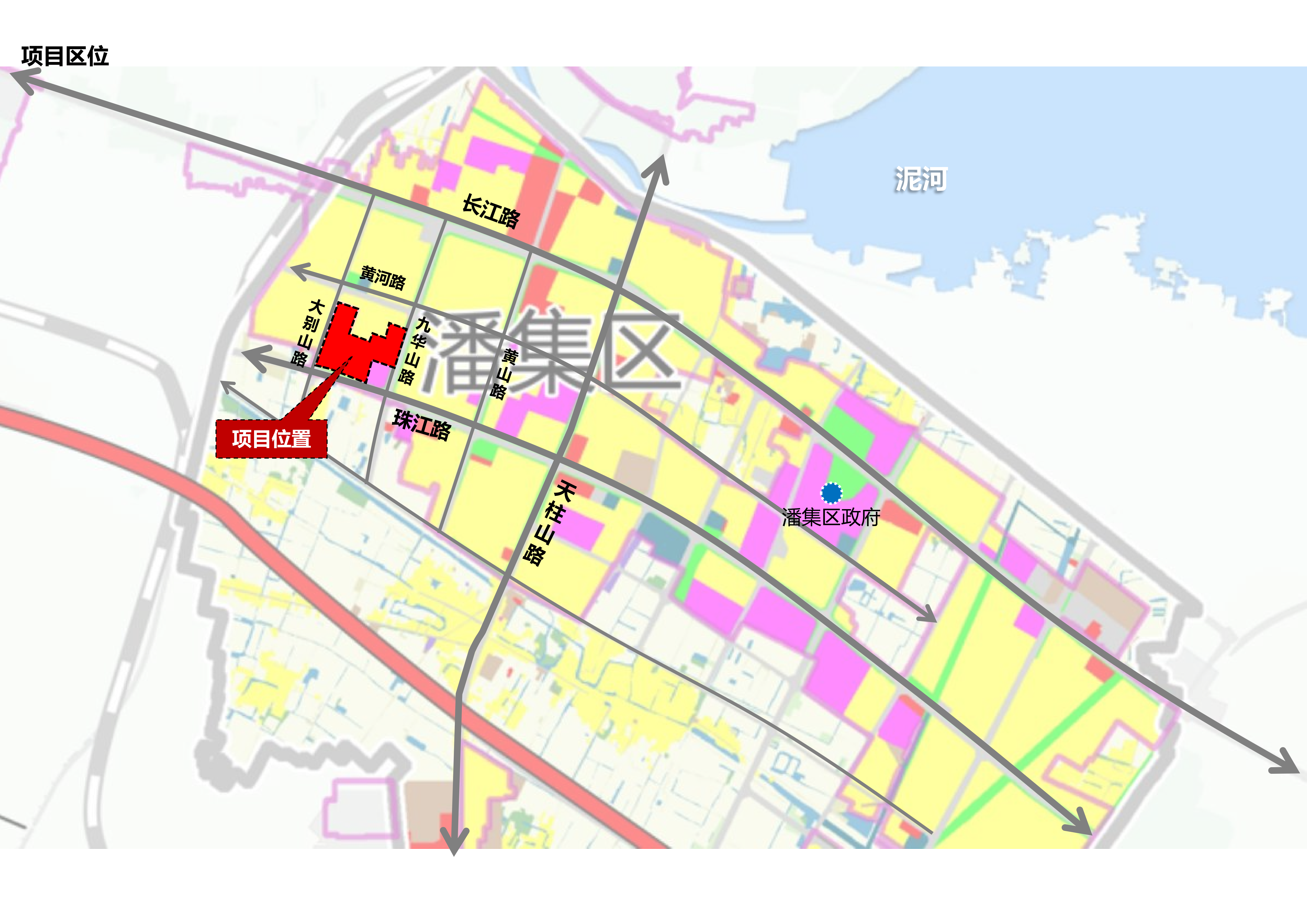项目选址位于潘集区大别山路东侧、黄河路南侧、九华山路西侧、珠江路北侧,总用地面积约9.9万㎡。