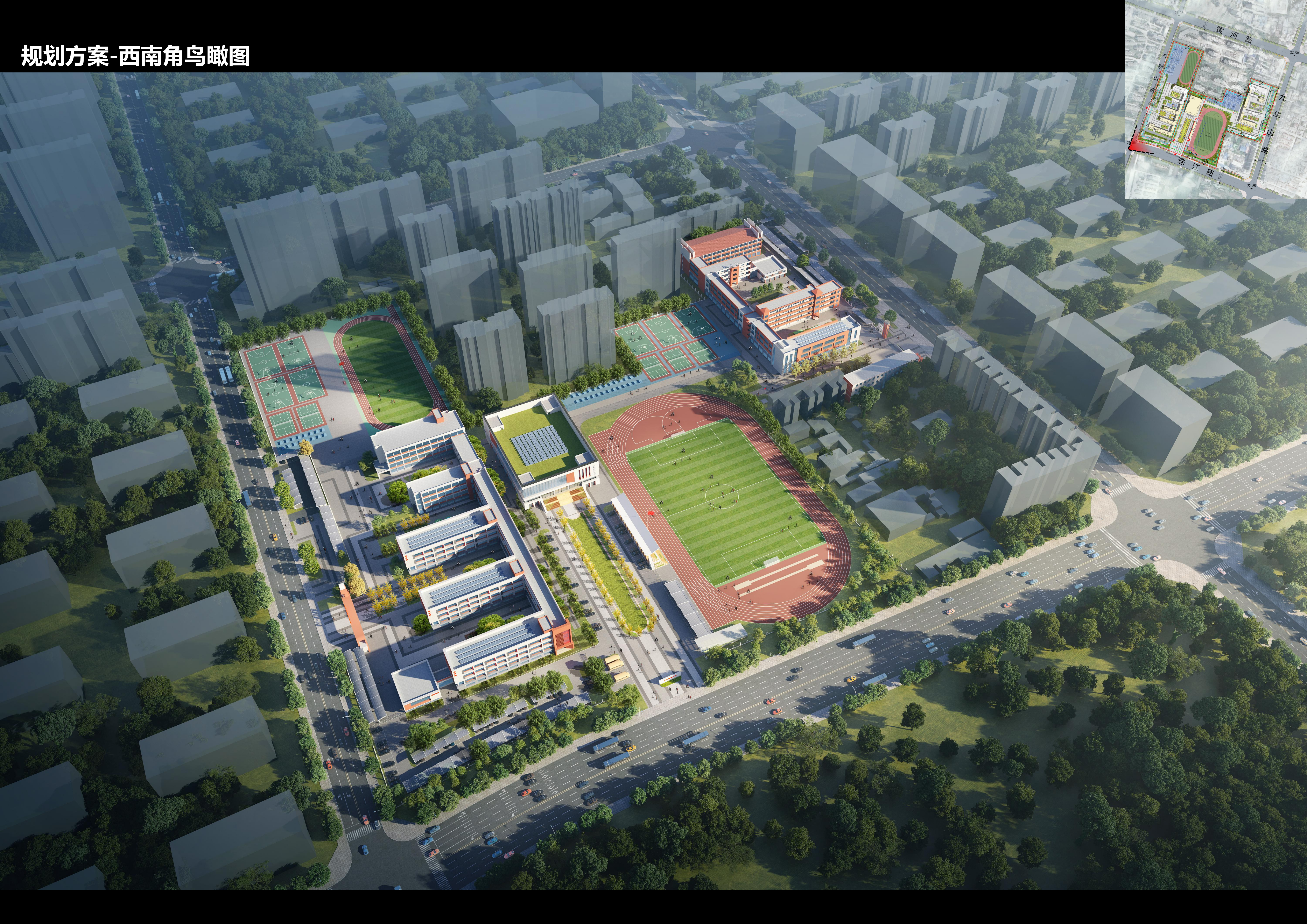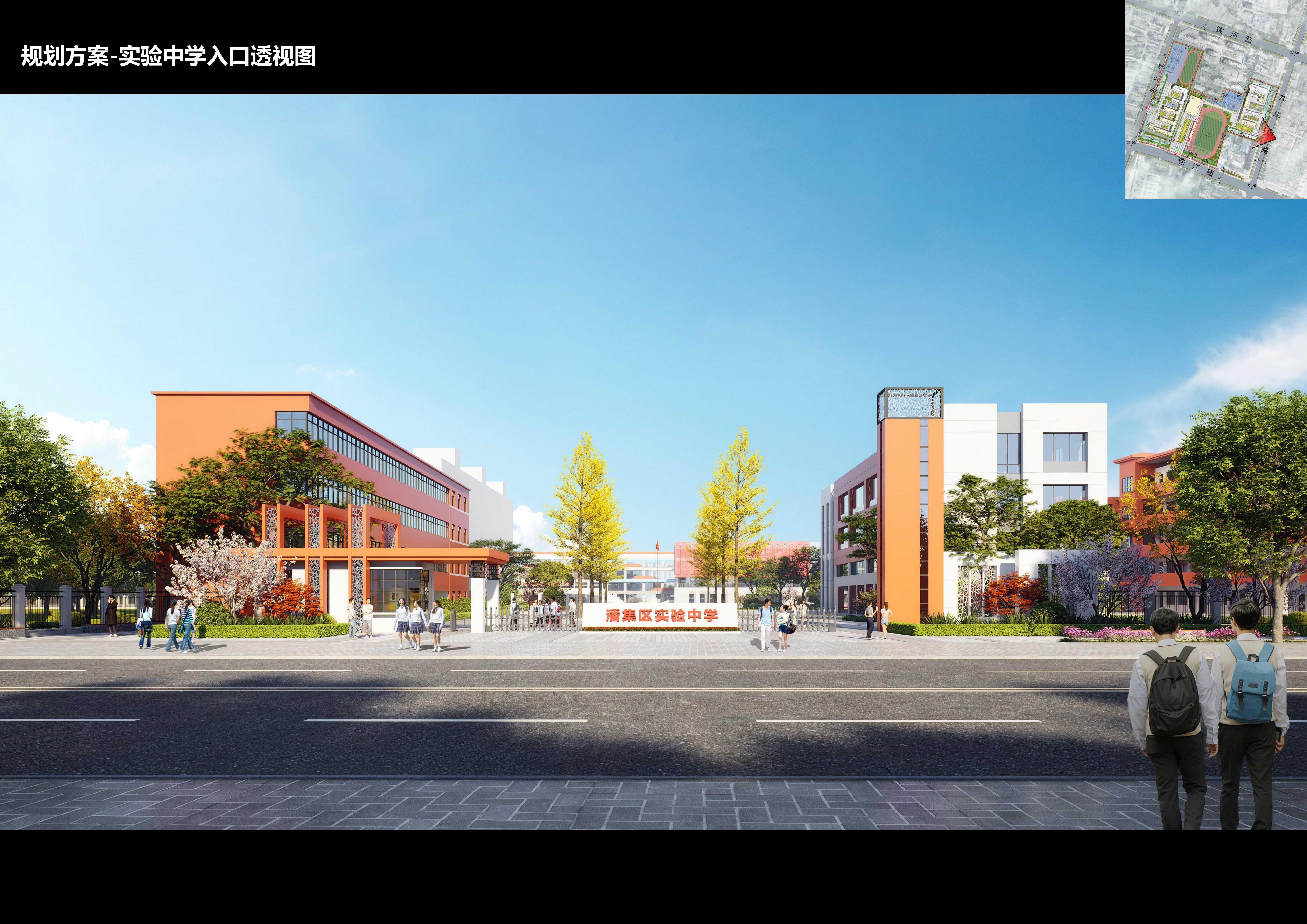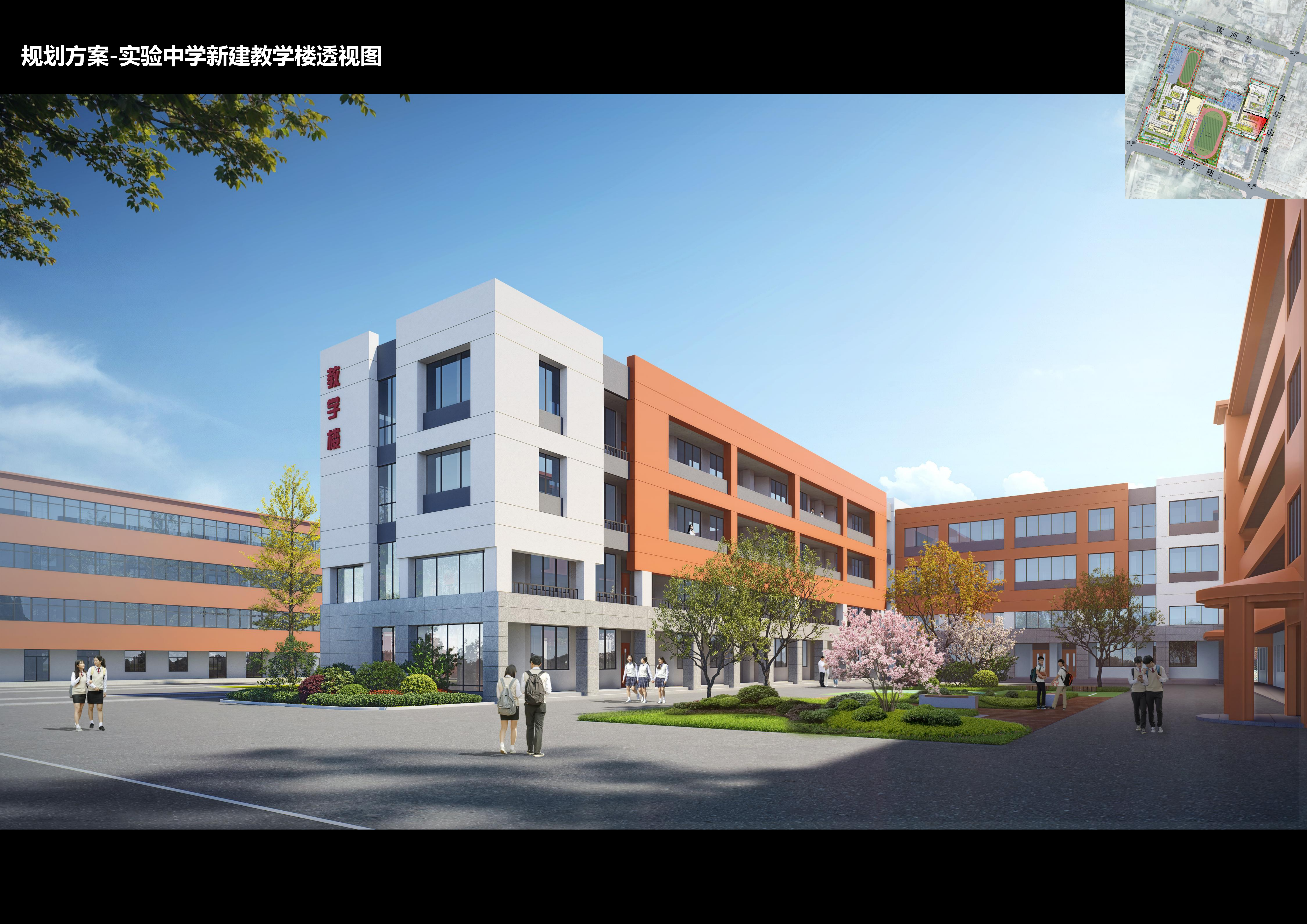实验中学:规划30个班。新建1栋1层合班教室、1栋4层教学楼,新建4层连廊连接新老教学楼。现状北侧闲置4层学生宿舍加固满足结构安全要求后改造为综合楼。新建400米标准操场、看台及地下车库。规划总用地面积约48276㎡,总建筑面积约21437㎡,设计容积率约0.36,建筑密度9.89%,可比绿地率约37.18%。