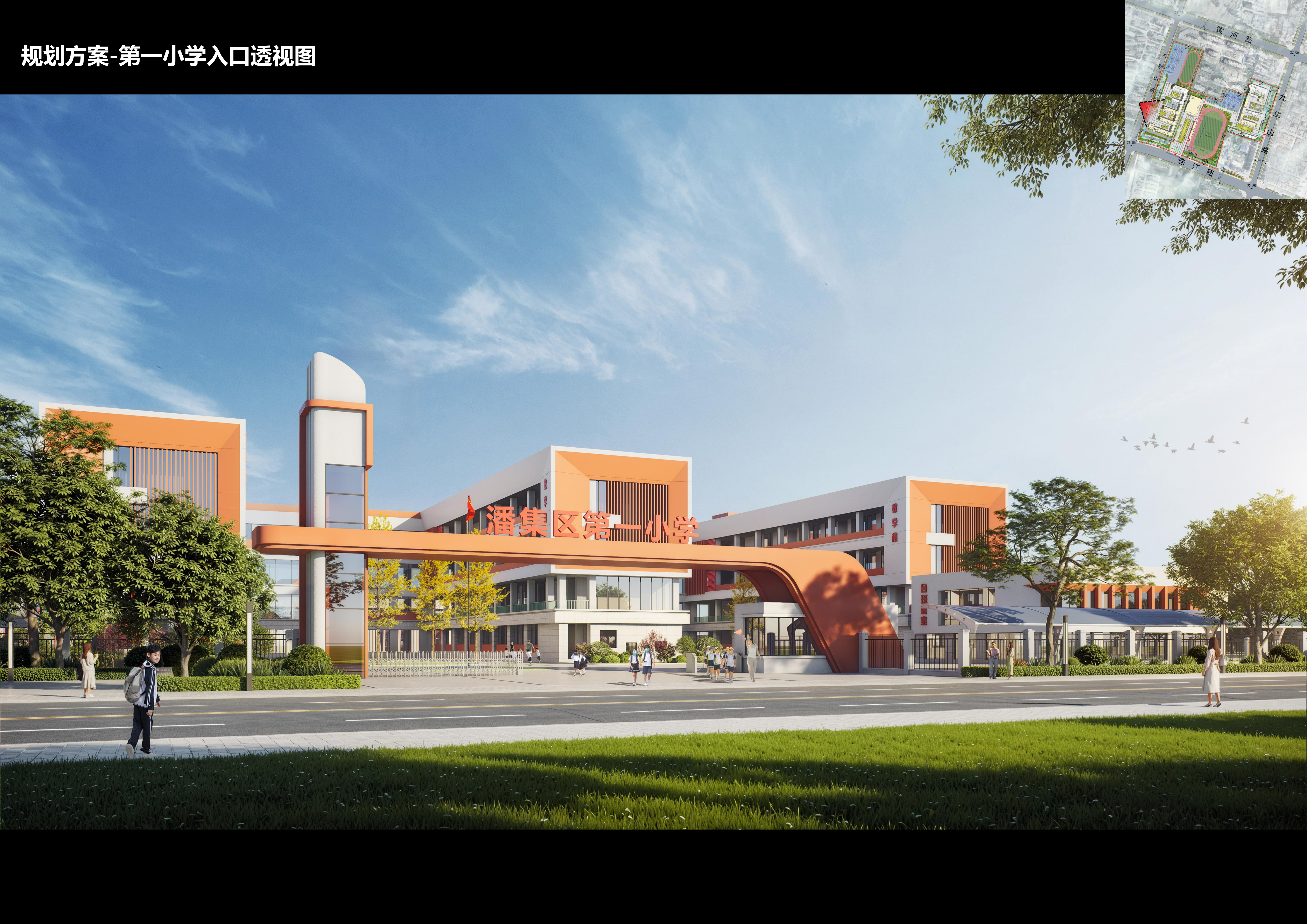 第一小学:规划36个班。新建3栋4层教学楼、1栋合班教室及4层附属连廊,现状北侧4层教学楼改造为综合楼,现状南侧4层教学楼改造为行政楼。规划总用地面积约38507㎡,总建筑面积约17693㎡,设计容积率约0.46,建筑密度12.16%,可比绿地率约37.62%。