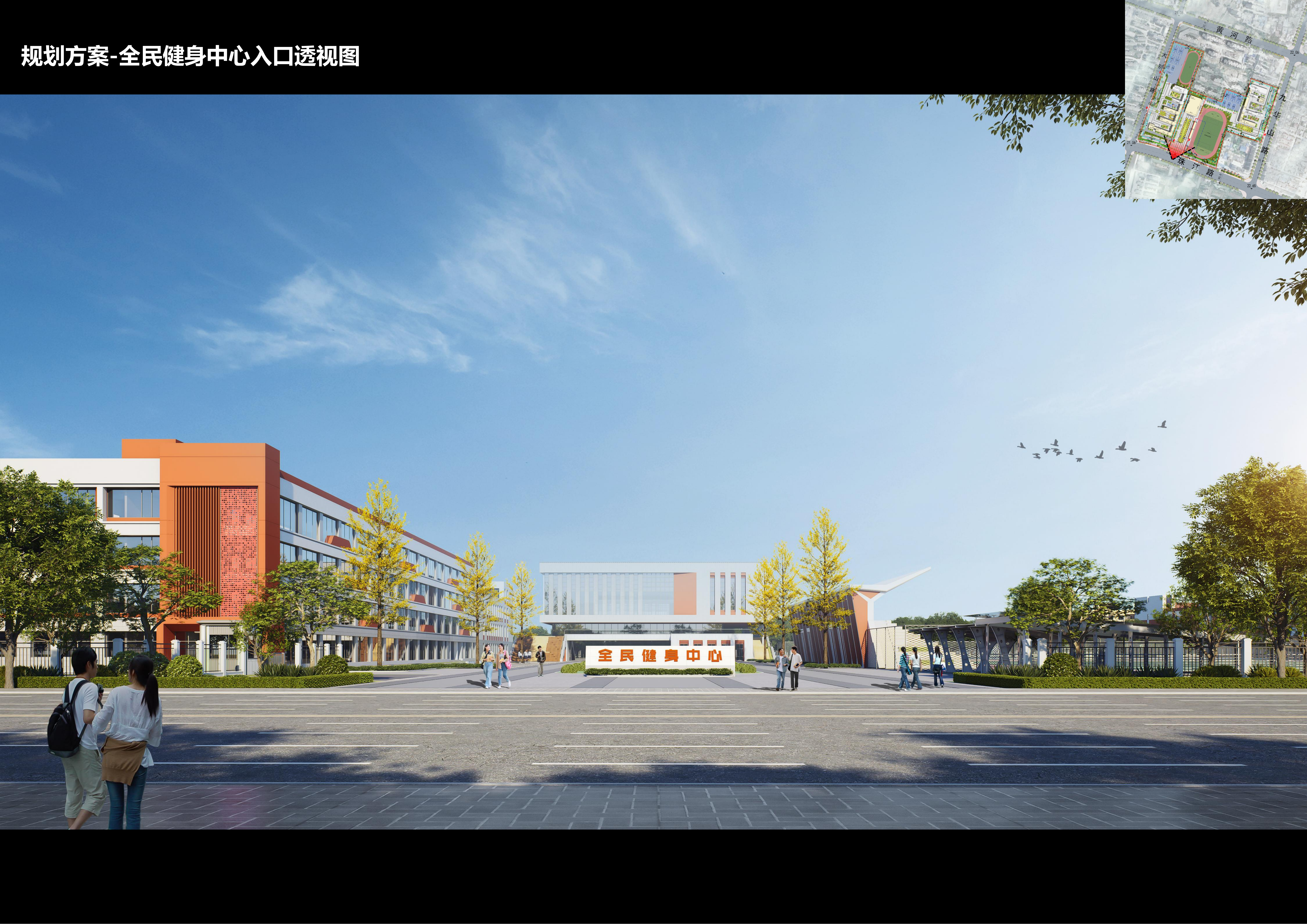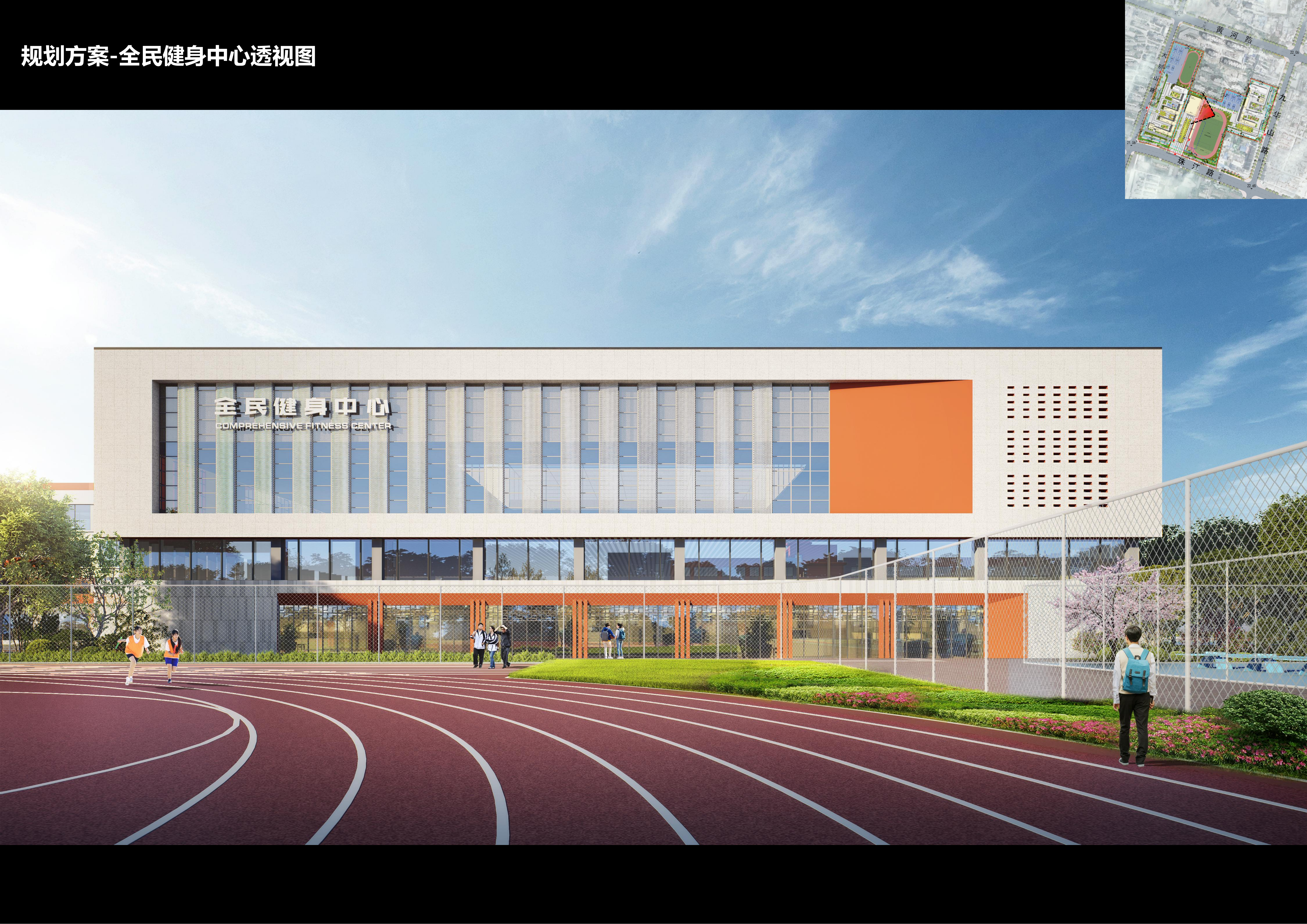 全民健身中心:新建1栋2层全民健身中心。规划总用地面积约11939㎡,建筑面积约5500㎡,设计容积率约0.46,建筑密度23.03%,绿地率约16.32%。