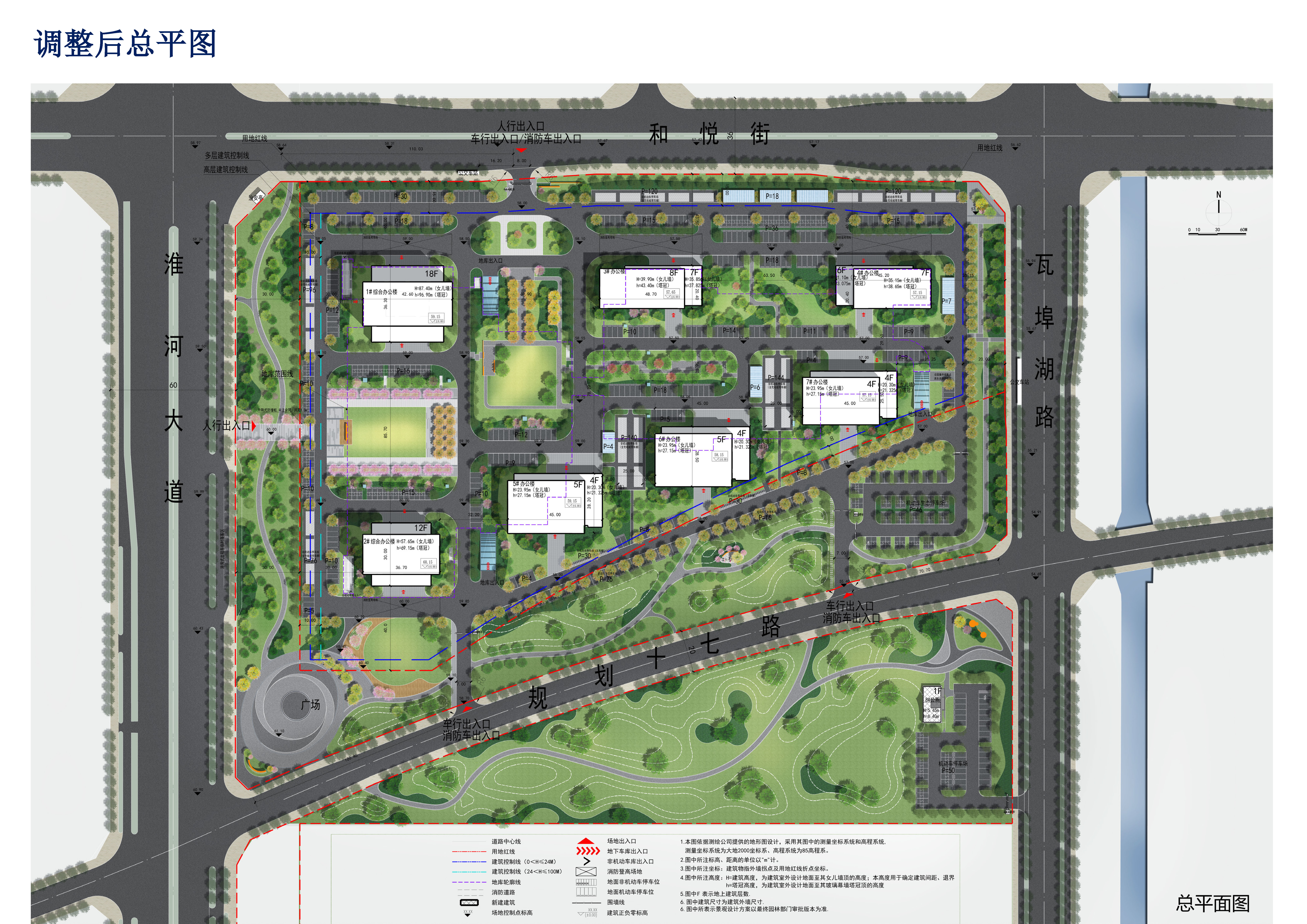 2.优化景观设计,地库采光井位置、非机动车坡道位置根据施工图深化微调,地上停车位布局局部调整,地下室轮廓根据施工图深化微调。