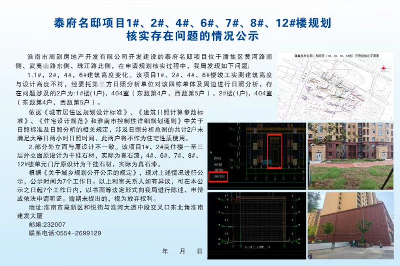 泰府名邸项目1#、2#、4#、6#、7#、8#、12#楼规划核实存在问题的情况公示