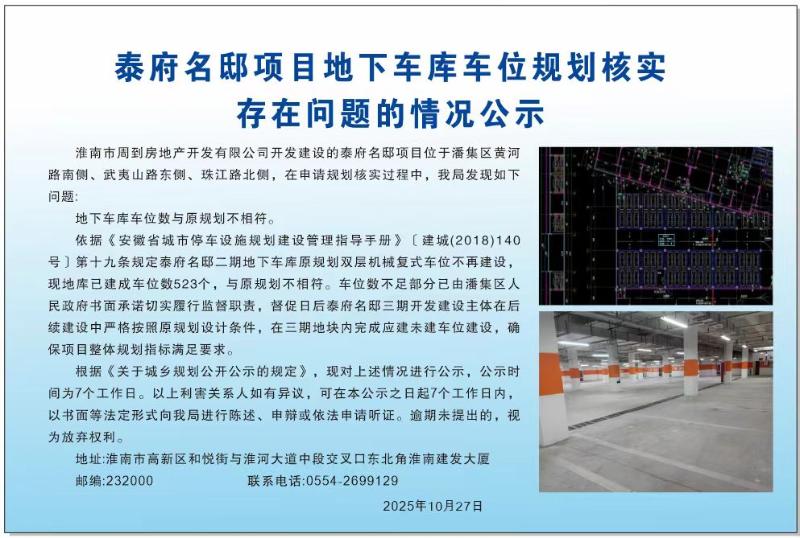 泰府名邸项目地下车库车位规划核实存在问题的情况公示