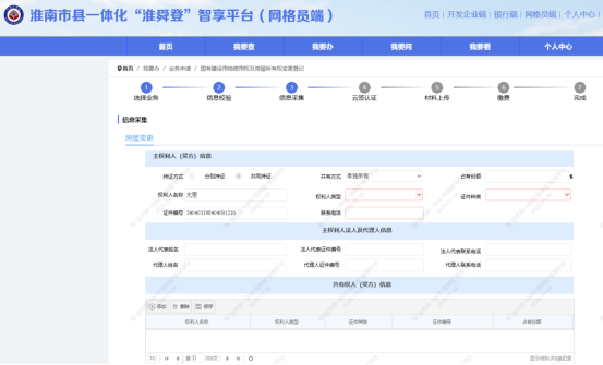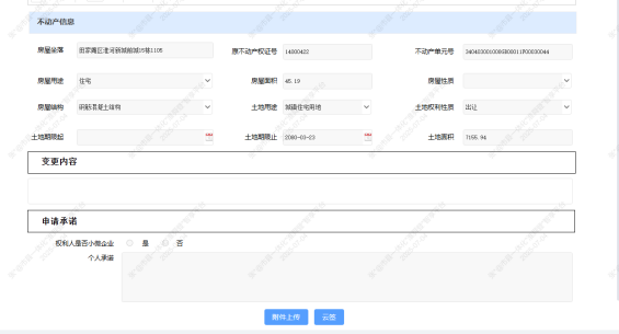 3.按照提示录入业务相关信息,变更登记业务需在备注栏描述变更事项。