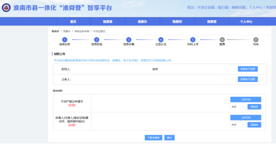 3、按照提示录入业务相关信息,因补发证业务无需更改任何信息,则无需录入。核对信息无误即可,“个人端”申请需进行云签(电子签名、电子印章),“网格员端”可直接选择附件上传。